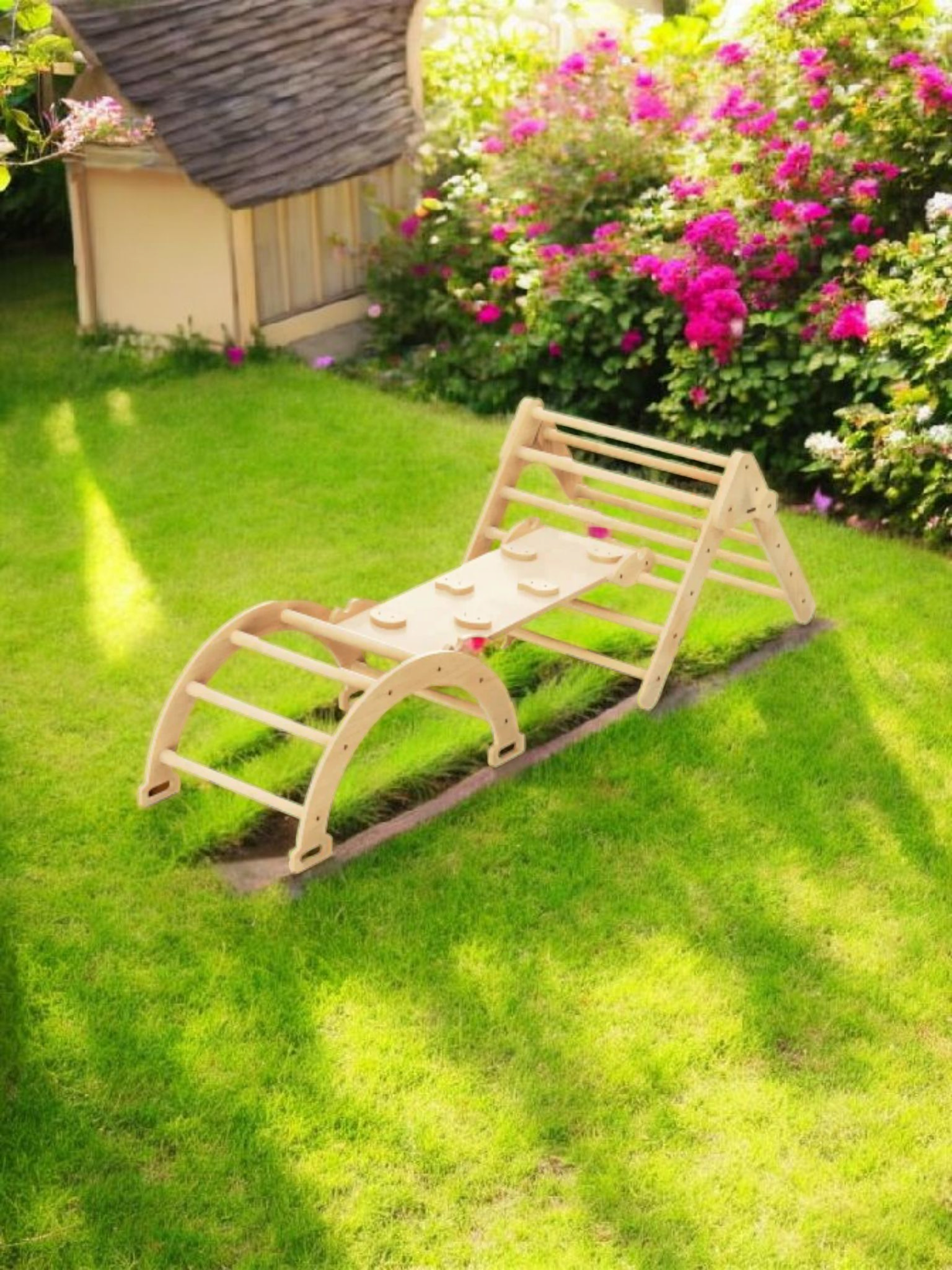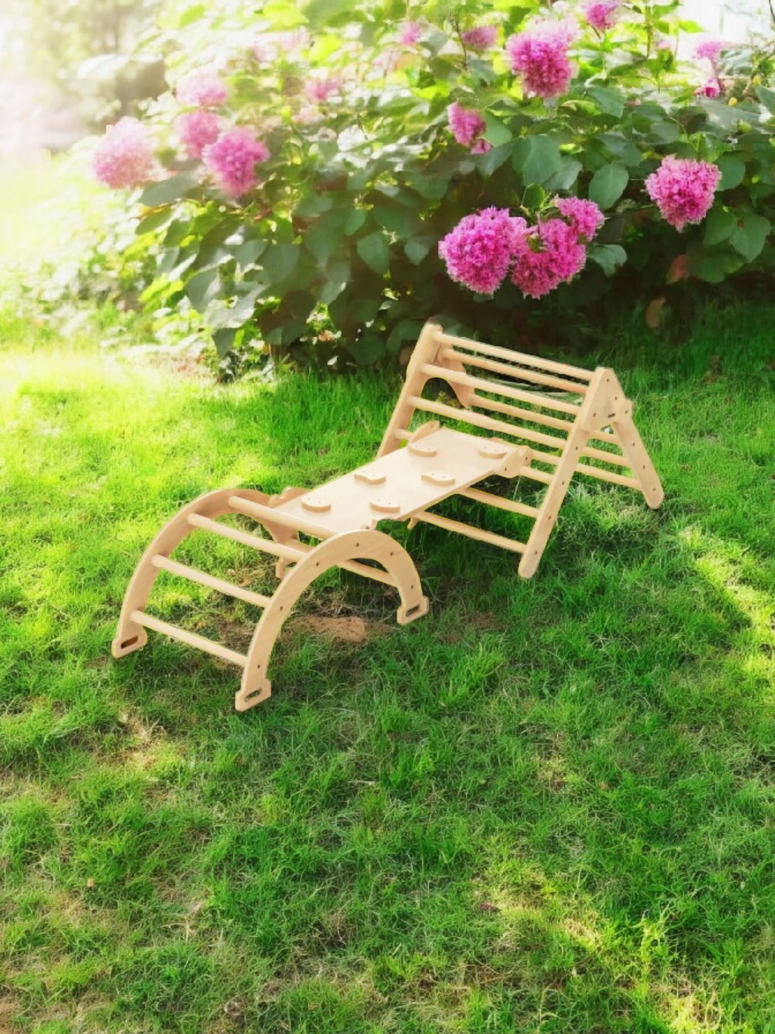 5-in-1 Montessori Pikler Triangle Set – Indoor Wooden Climbing Gym
