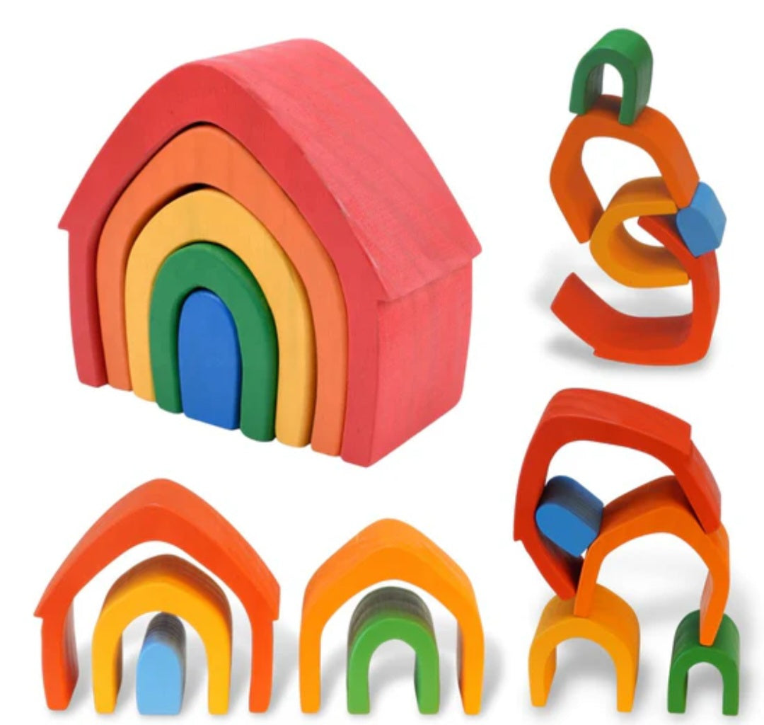 Wooden Rainbow Nesting House: A Versatile Stacking Toy for All Ages