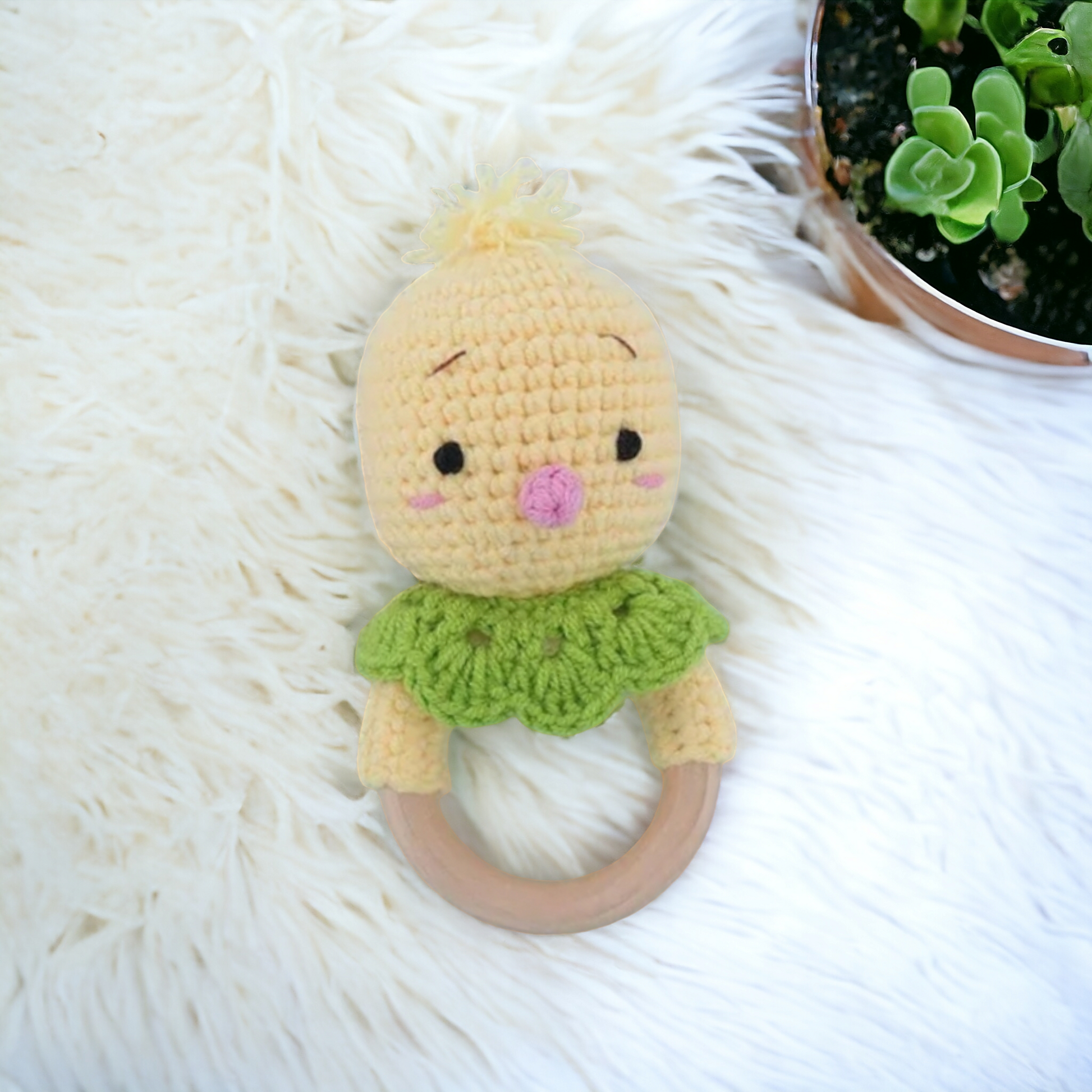 Handmade Wooden Crochet Baby Rattle