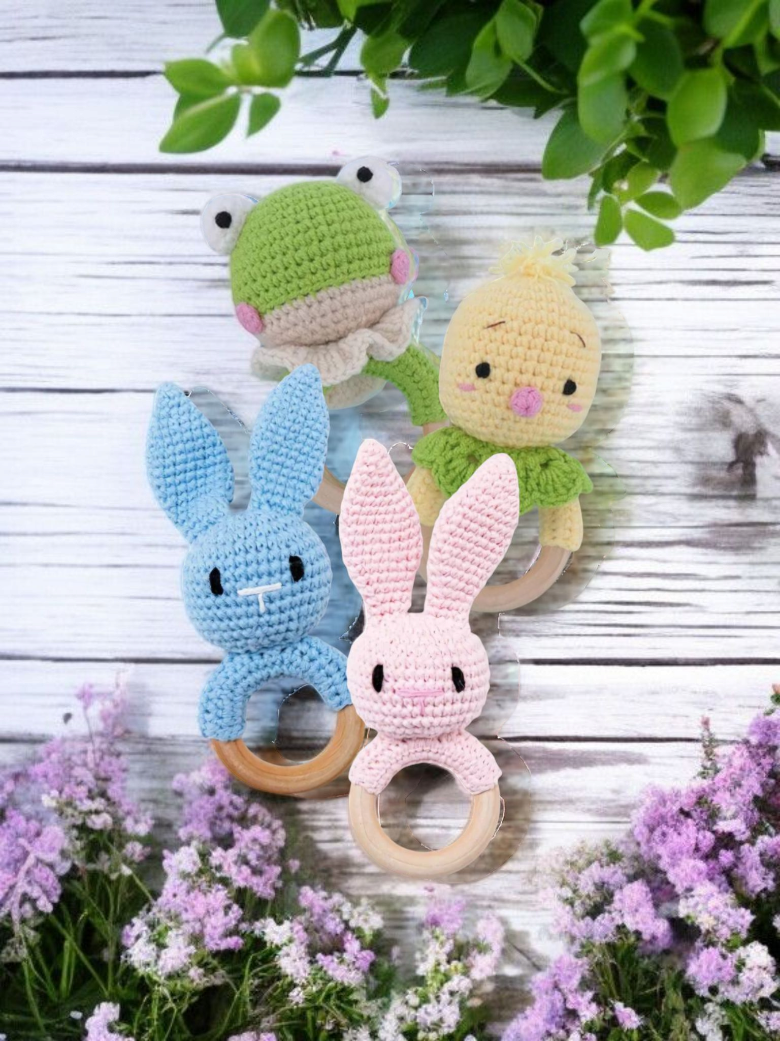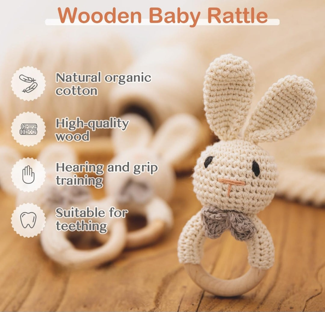 Top Seller! Handmade Wooden Crochet Baby Rattles