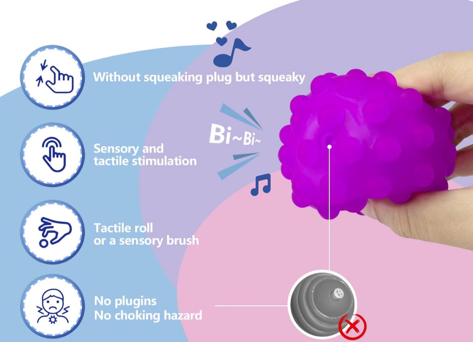 Auditory Stimulation: While the balls lack a built-in sound device, they create soft squeaky sounds when squeezed, attracting your baby’s attention.