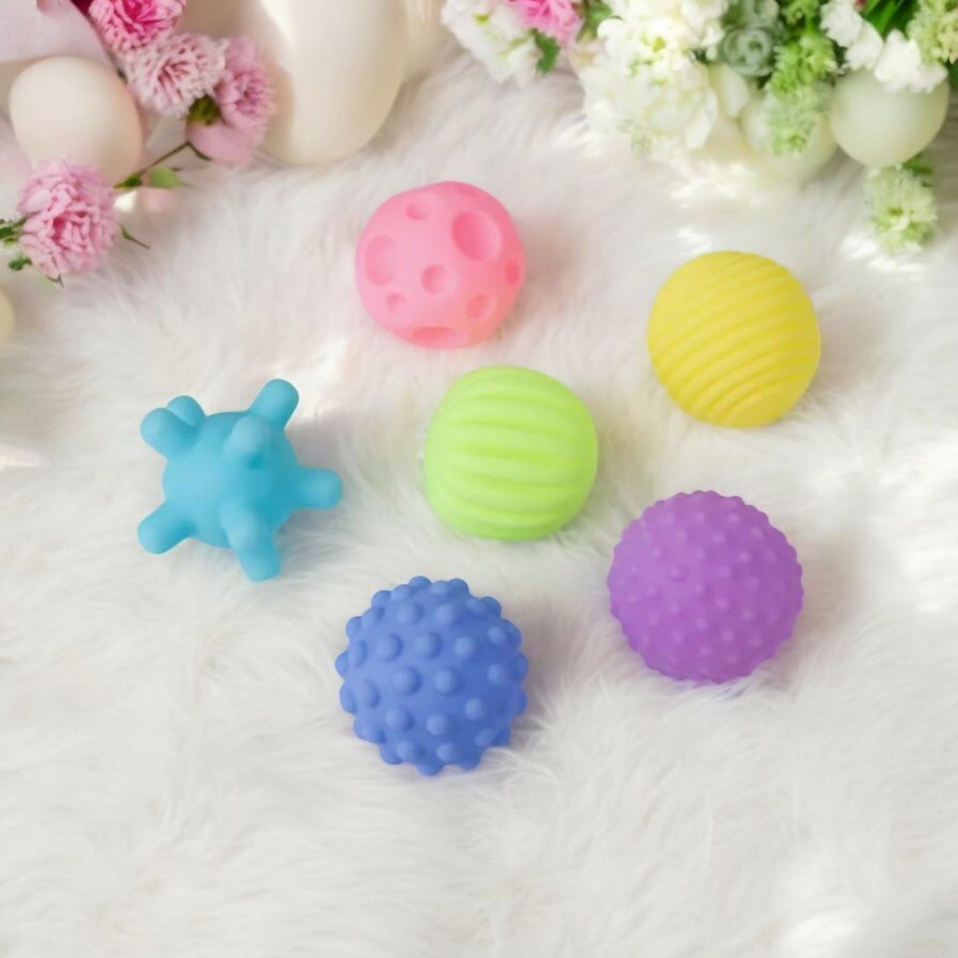 Delight your little one with this tactile ball Set, a 6-piece collection of colored, soft sensory balls designed to support early development and playful exploration. Perfect for babies 3 months and older, these Montessori-inspired toys encourage grasping, tactile stimulation, and sensory discovery. Available in bright colors or pastel.