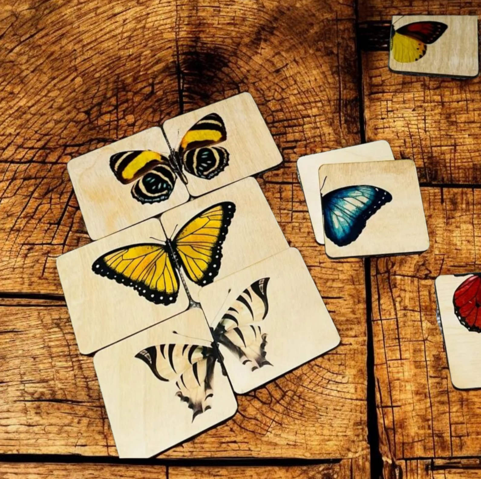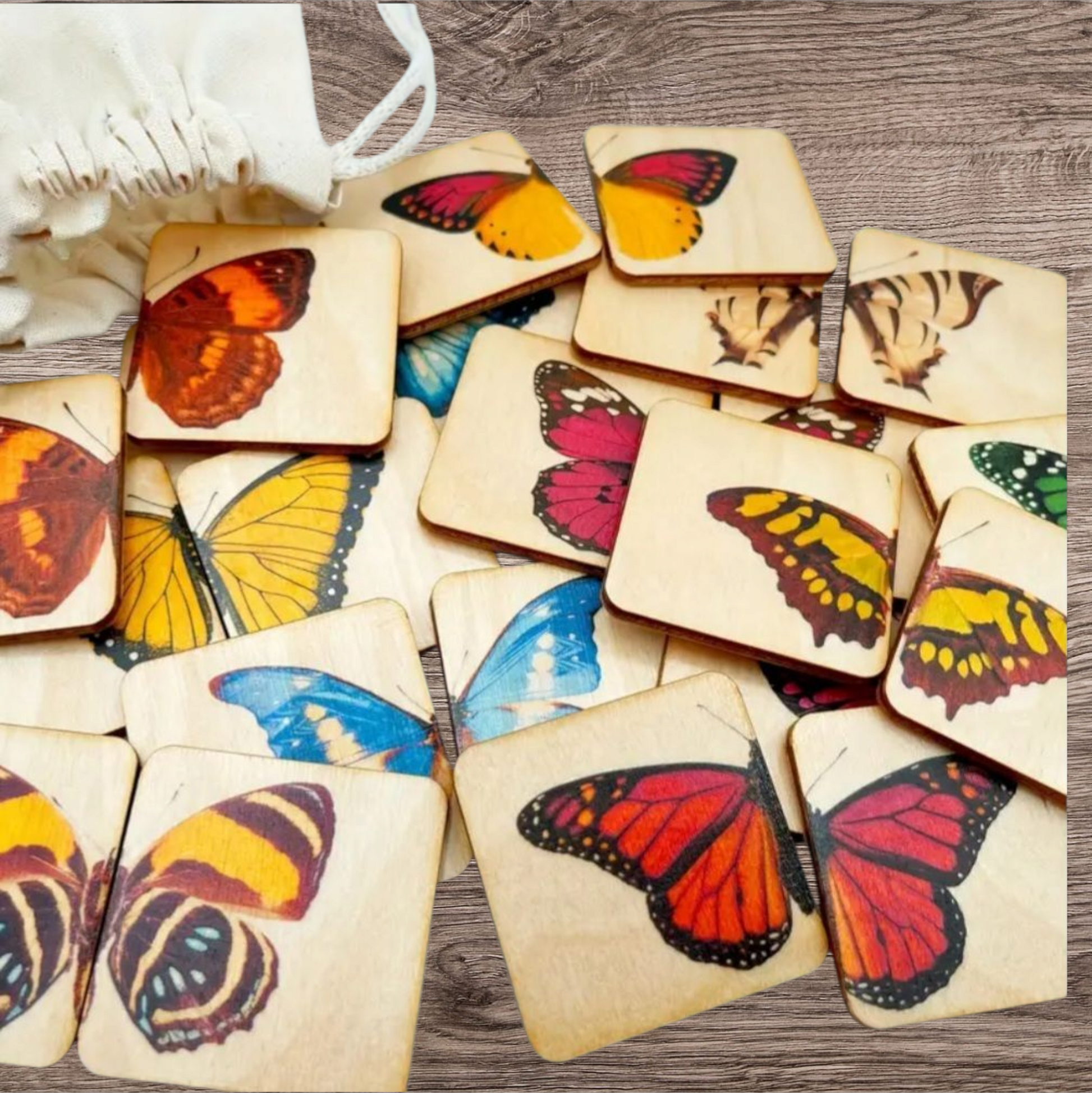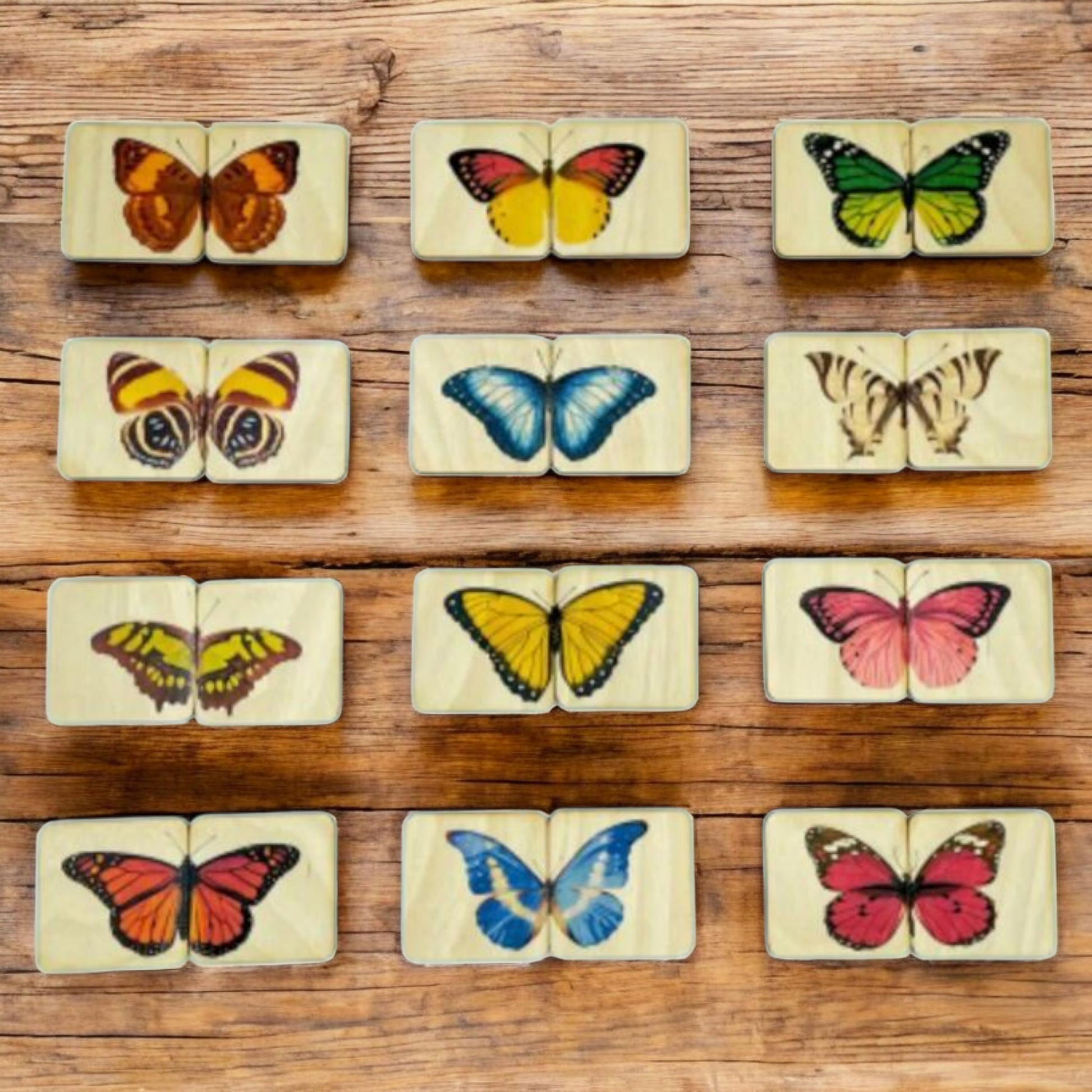 24 wooden tiles (12 butterfly pairs)