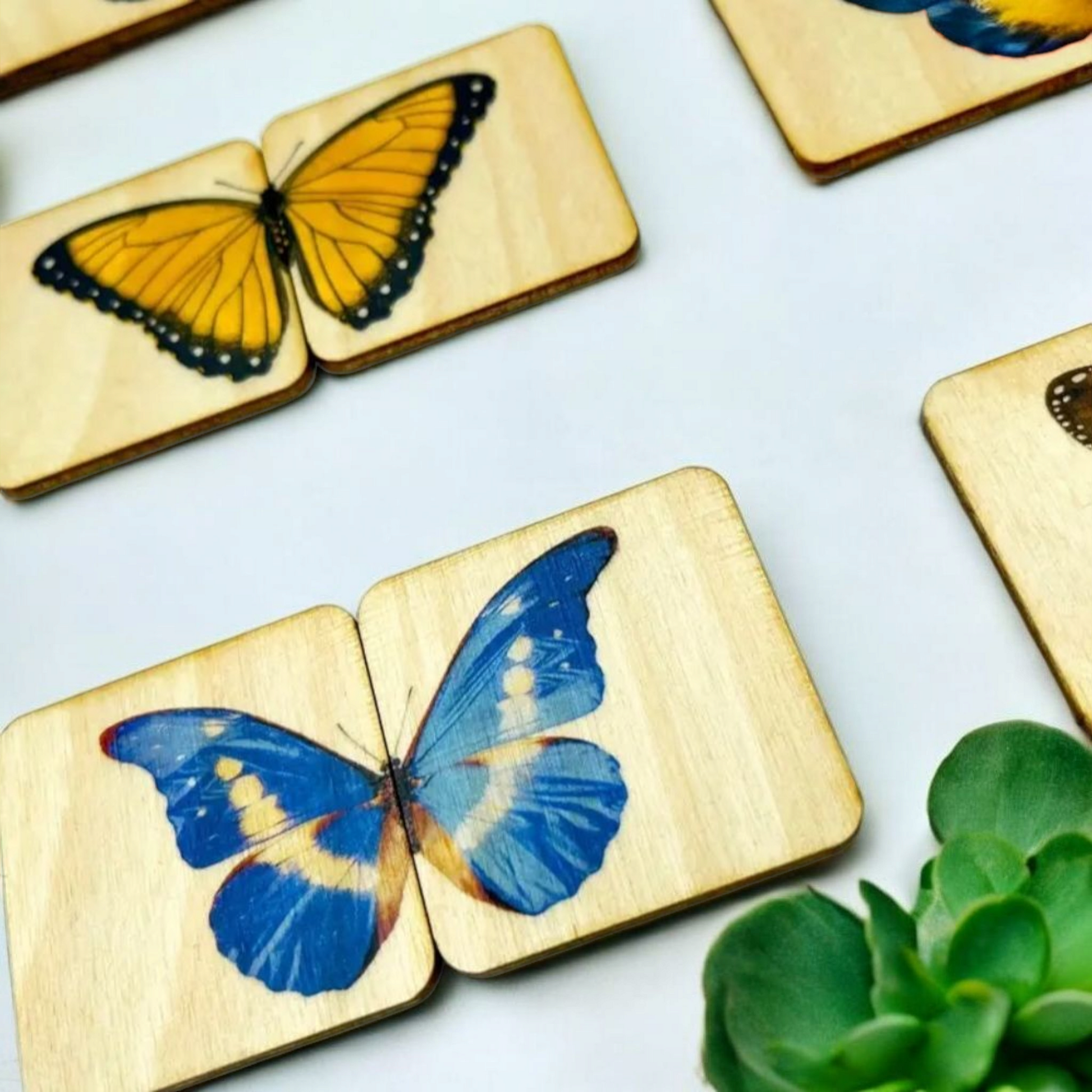 Bring the beauty of nature into playtime with our Montessori Wooden Butterfly Matching Puzzle—a timeless, educational toy designed to spark curiosity and boost developmental skills. Each handcrafted tile features vibrant, lifelike butterfly illustrations that help children make real-world connections while enhancing memory, concentration, and fine motor skills.