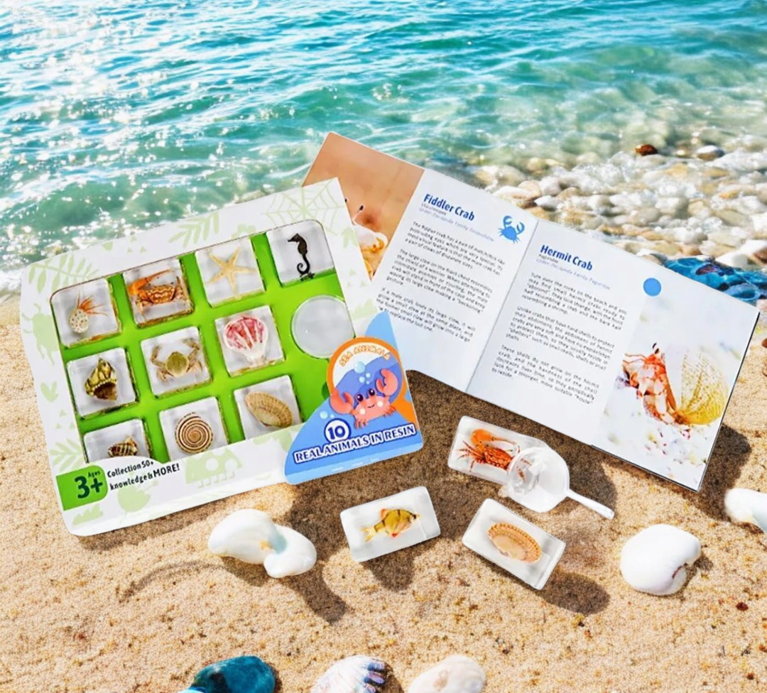 A bright and playful boxed set featuring 10 unique sea specimens, including: