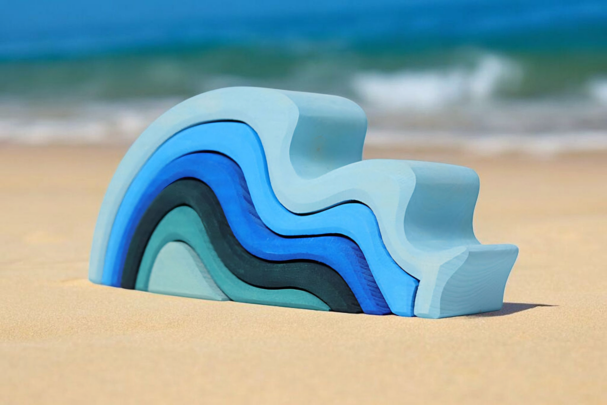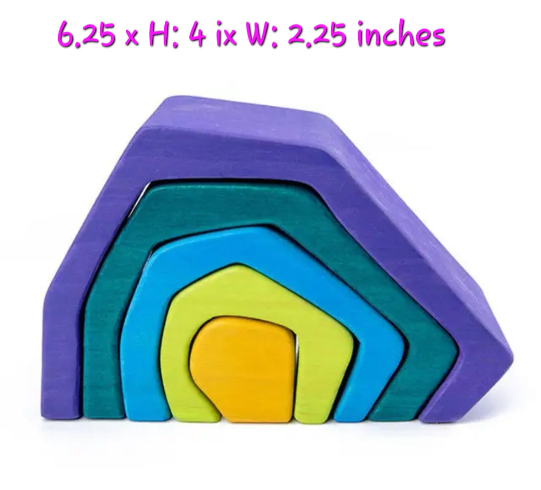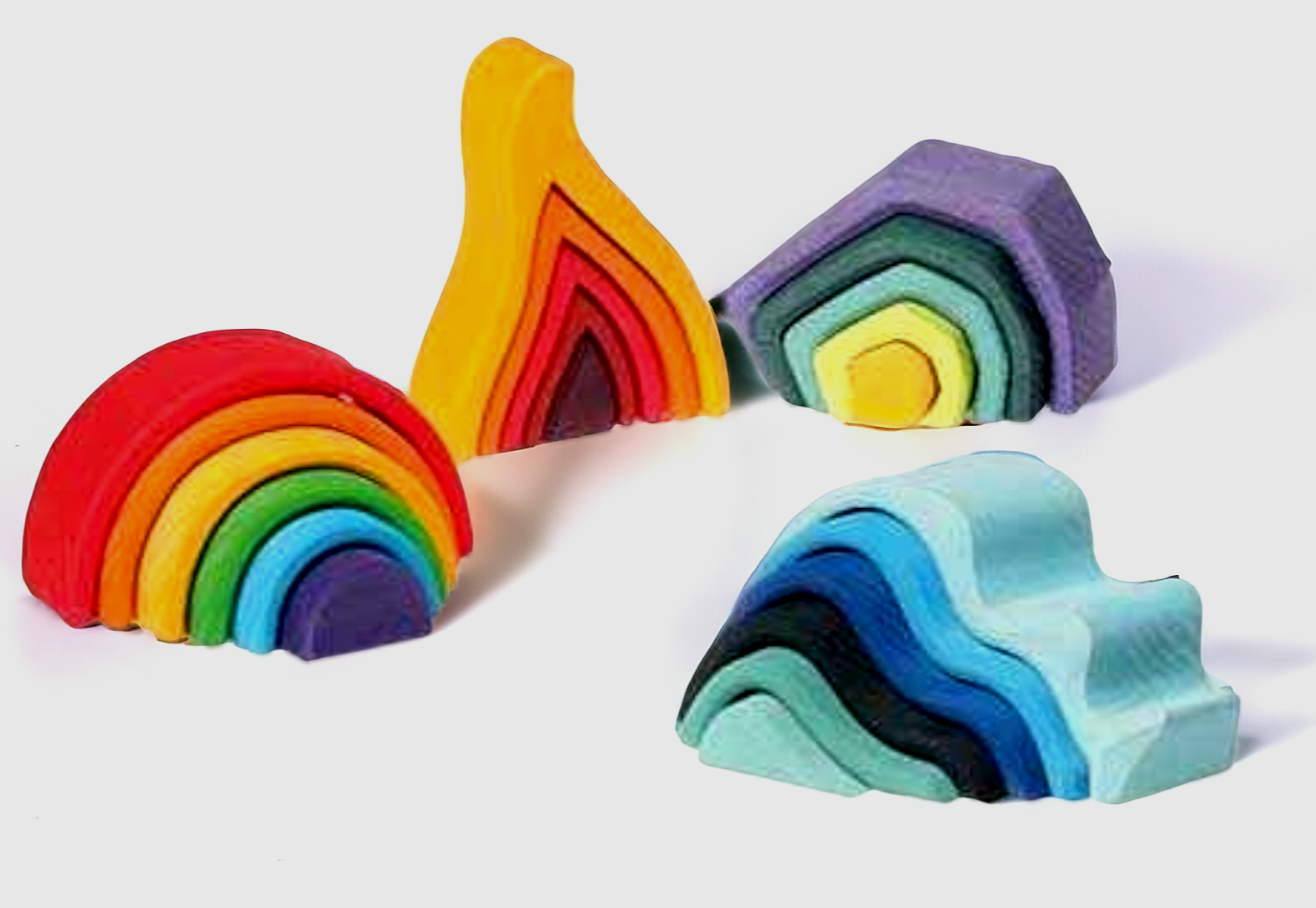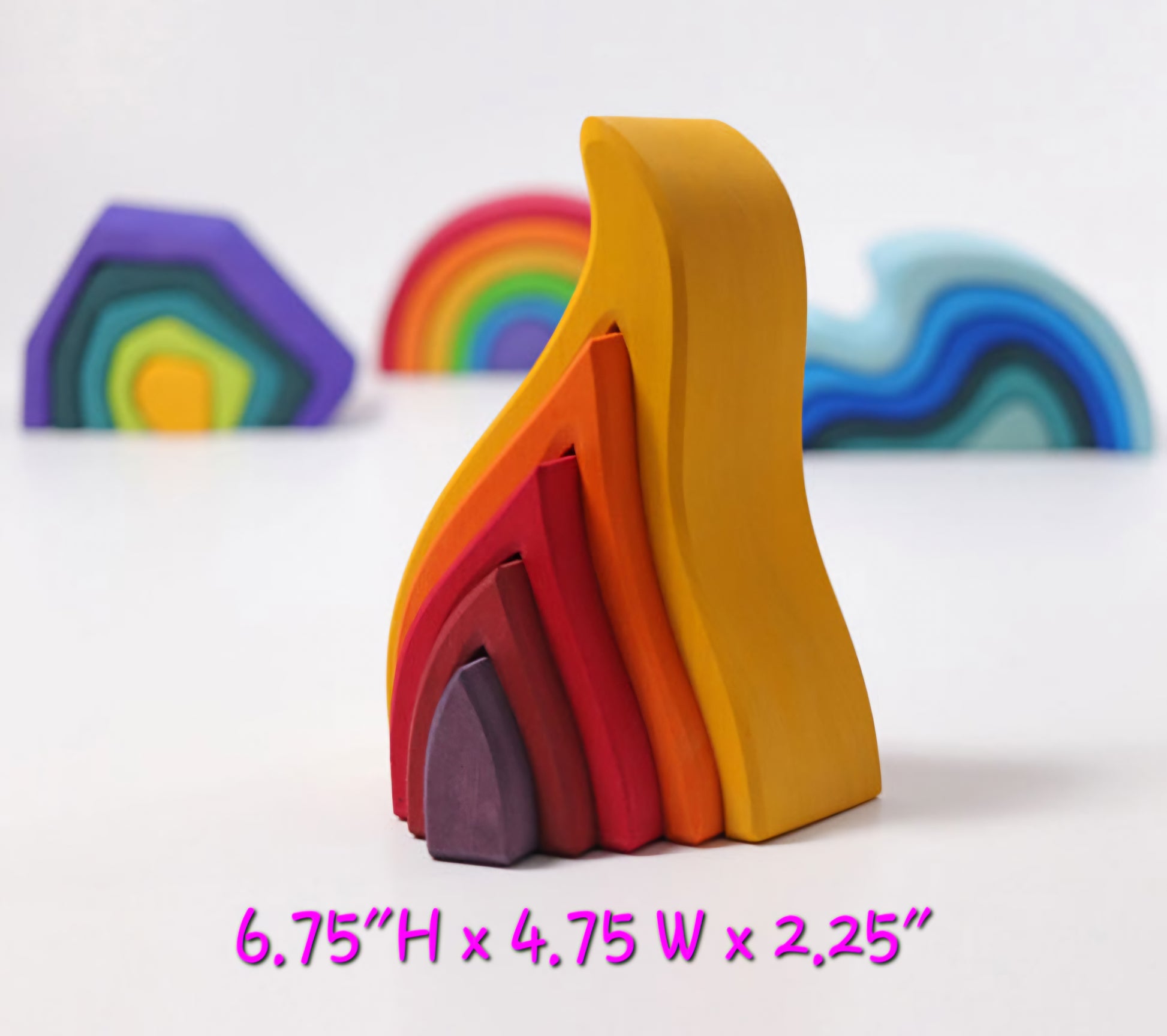 4 beautifully crafted wooden toys for $175.00. Earth, Waves (water), Flame (fire) and Rainbow (air)!