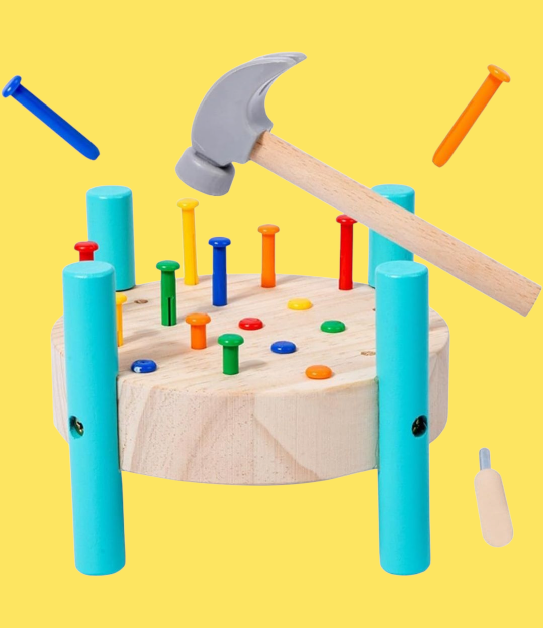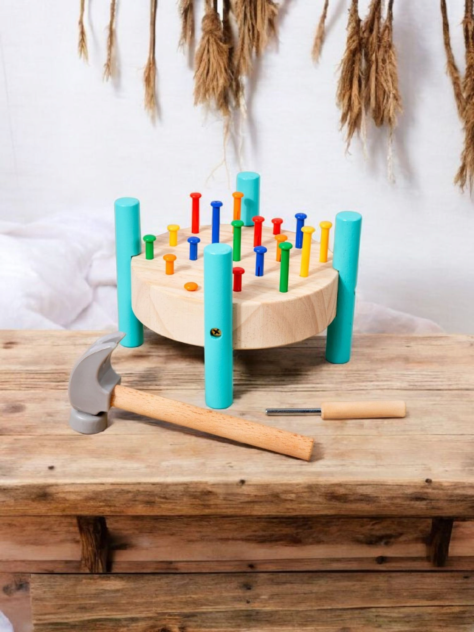 Let your little one explore, pound, and play with this interactive wooden hammer bench—a hands-on STEM toy designed to build coordination, muscle strength, and early cognitive skills. With colorful pegs, two-sided play, and a sturdy wooden hammer, this toy encourages curiosity and discovery in a fun and safe way.