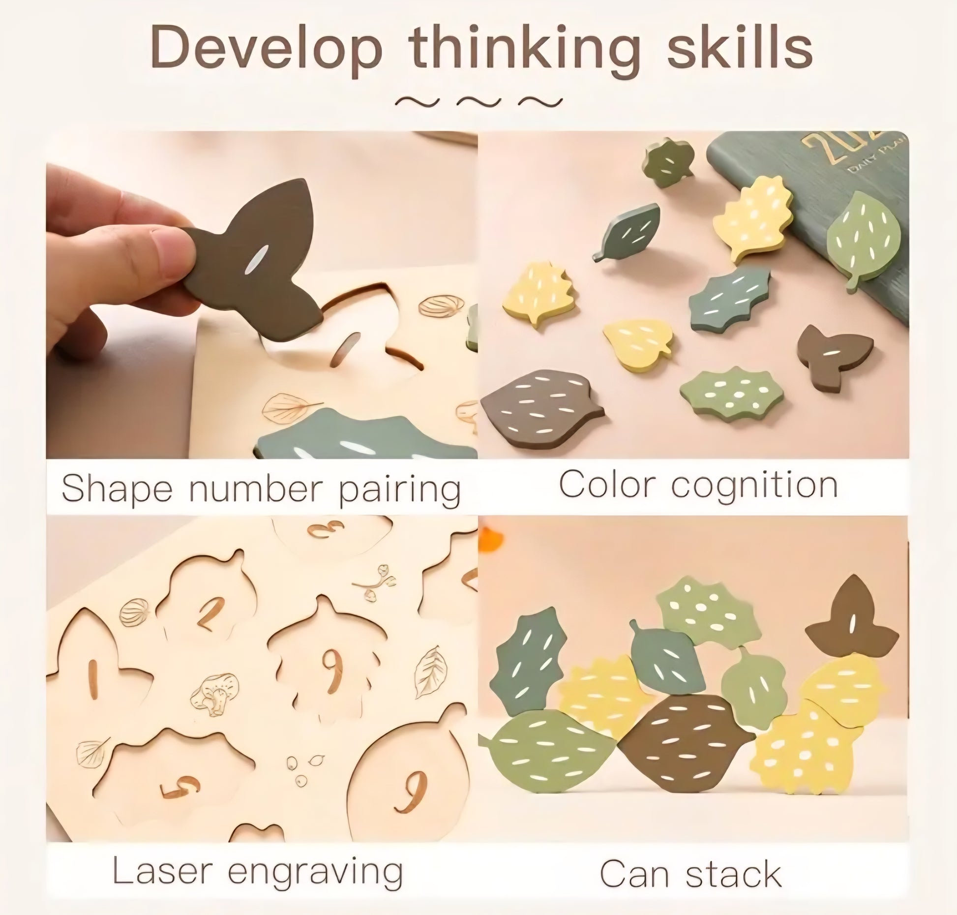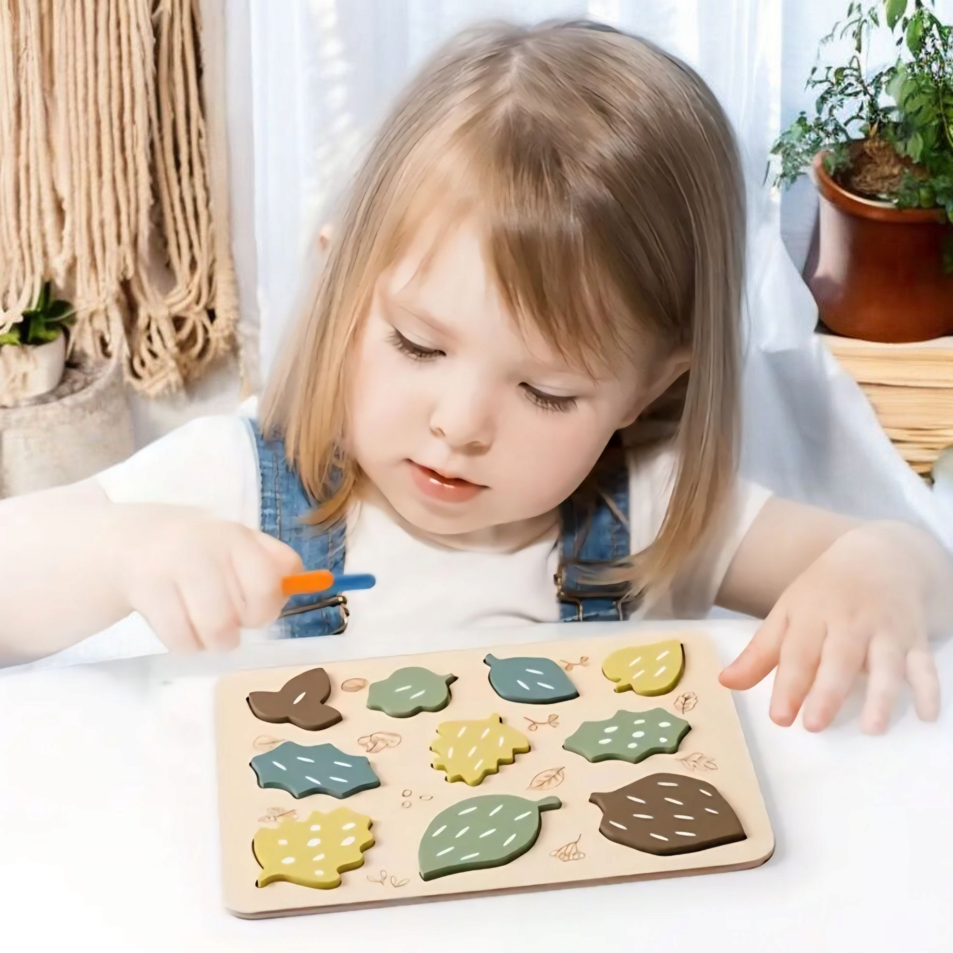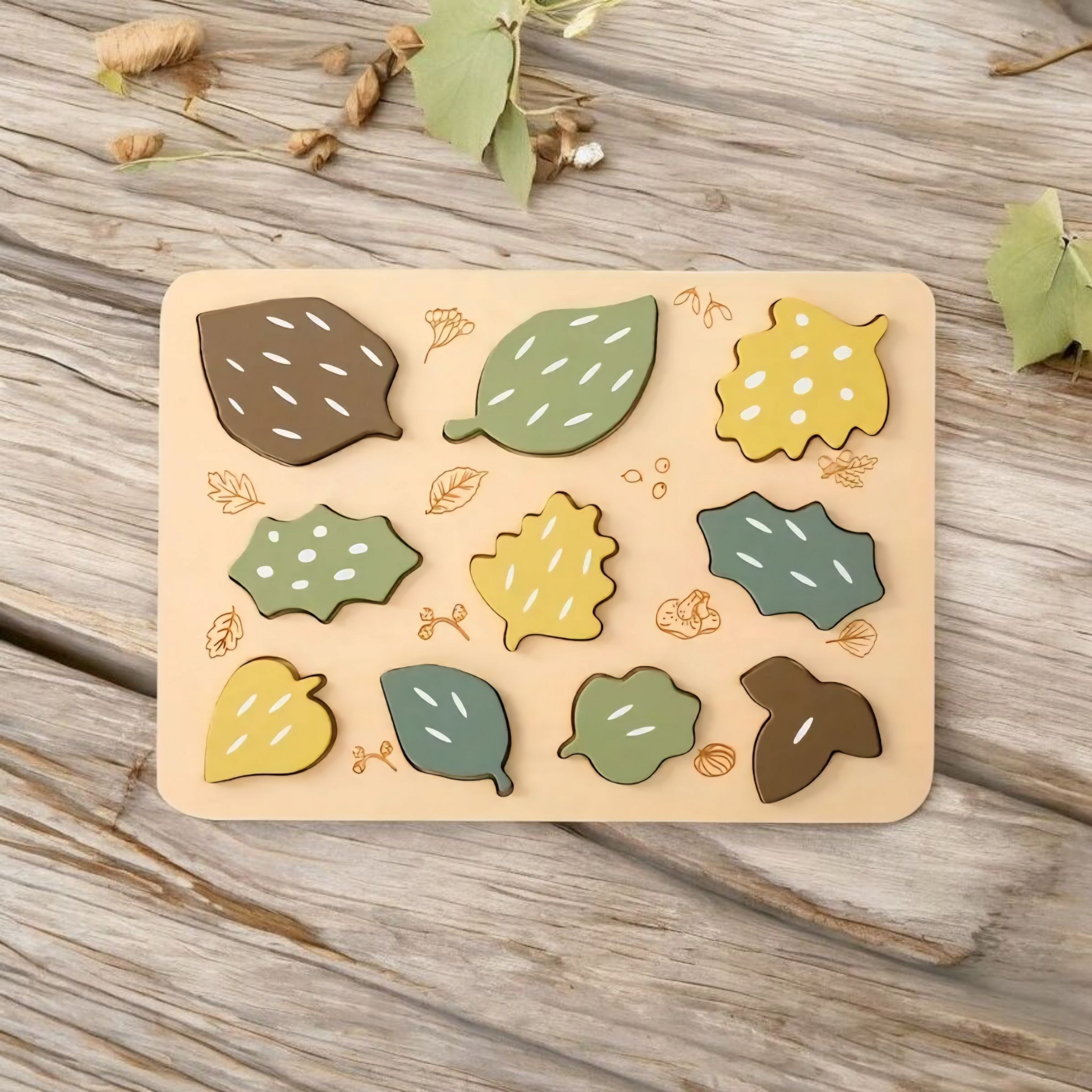 Wooden Leaf Puzzle Board – Montessori Nature Toy
