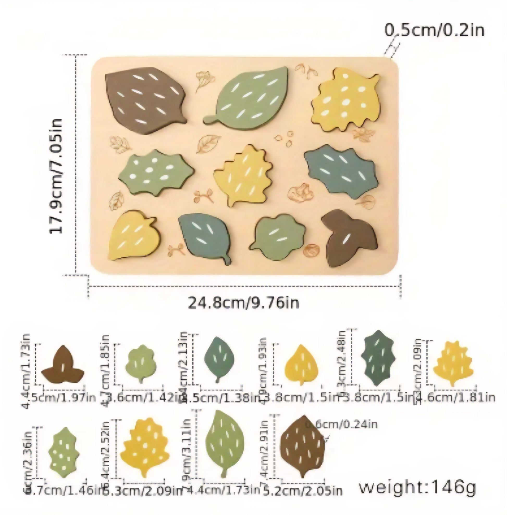 Designed with realistic leaf shapes and soft, earthy colors to spark curiosity and foster early appreciation for the natural world.