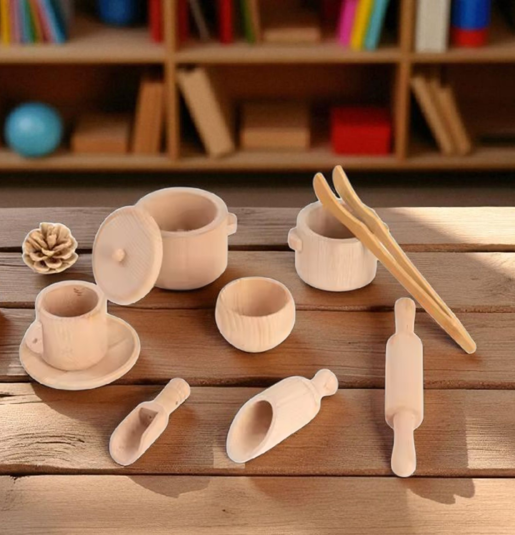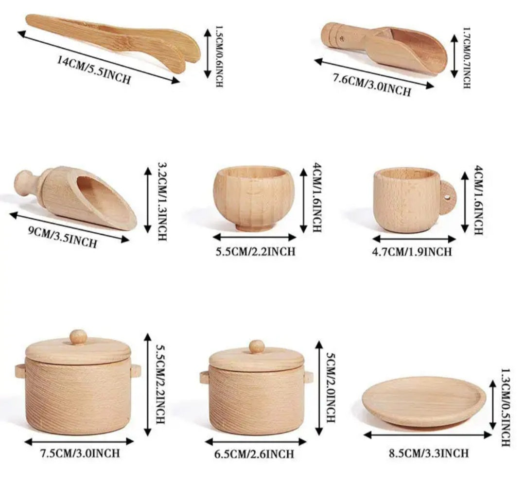 Encourage hands-on learning and fine motor skill development with this 10-piece wooden sensory tool set — perfect for Montessori-inspired play at home or in the classroom.